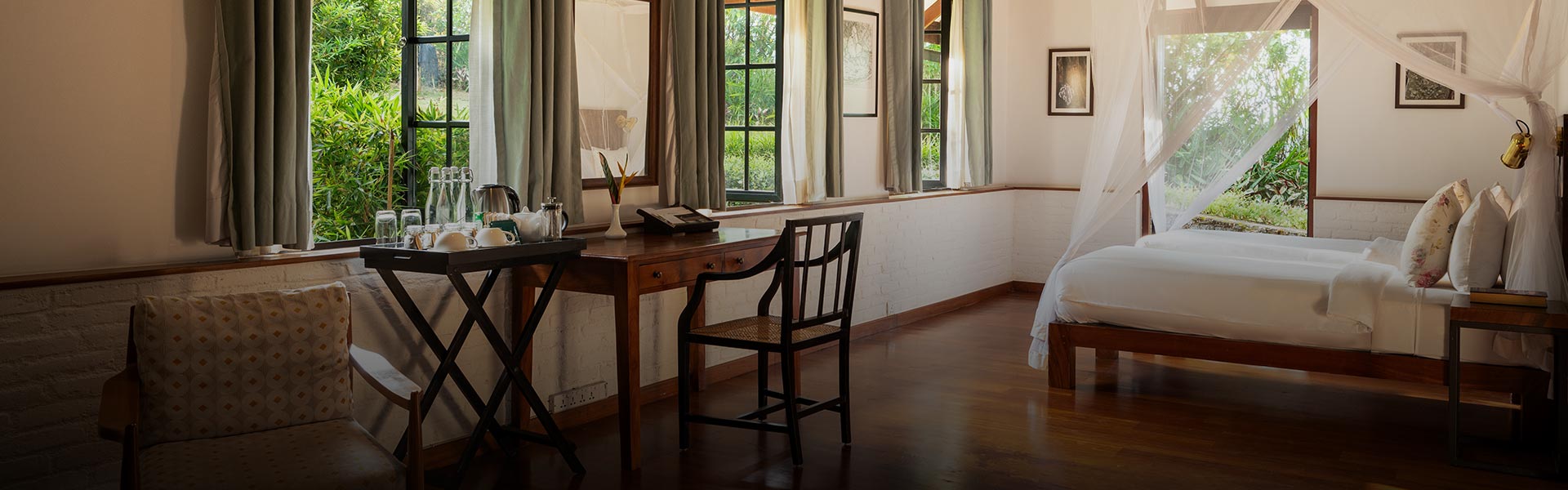 Both suites are equipped with four poster king size beds and private sitting areas that face the gardens and reservoir.