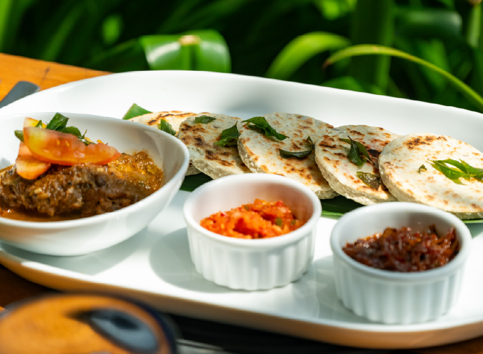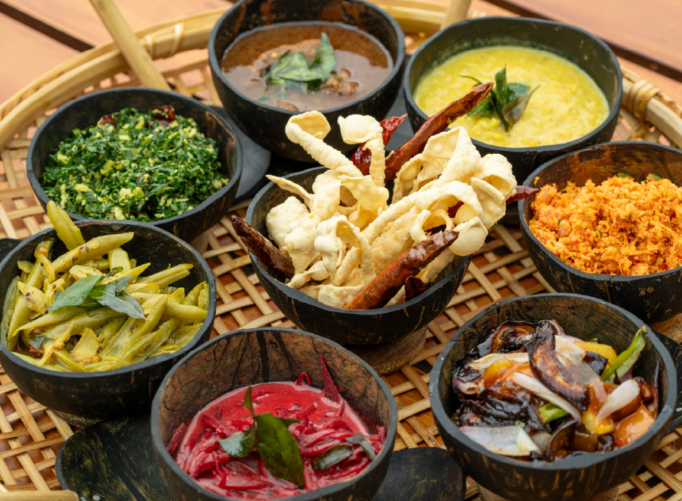 Possibly the most versatile side dishes in Sri Lanka, pol sambol, seeni sambol, lunu miris and dhal adds an extra layer of flavour to your overall meal. A traditional pol sambol can range from mildly spiced to fiery hot, so approach with caution. Seeni sambol is sweet, spicy, and deeply savoury – made by slow-cooking onions with chilli, sugar, and spices until they caramelise.