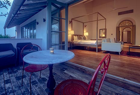 Bazaar Bedrooms are designed with four-poster king-size or twin beds that open onto a sun-dappled central courtyard.
